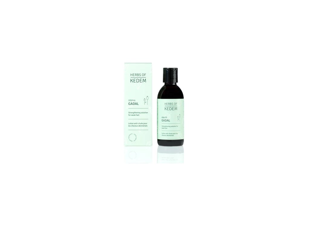 Sérum na padání vlasů Gadal KEDEM podporuje obnovu vlasových folikulů, zlepšuje prokrvení pokožky hlavy a brání vypadávání vlasů díky směsi organických olejů a bylinných extraktů z Judské pouště.