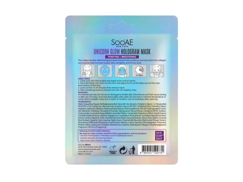 Detoxikační hologramová maska s uhlím, niacinamidem a rostlinným kolagenem čistí, rozjasňuje a zpevňuje pleť, zatímco ji zároveň hydratuje a vyživuje.